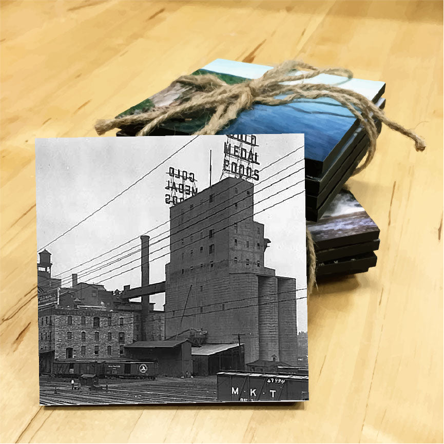 Gold Medal Flour Wooden Coaster (black & white)