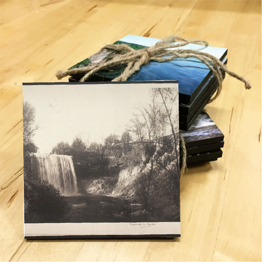 Vintage Minnehaha Falls Postcard Wooden Coaster